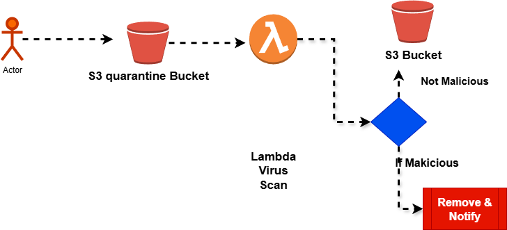 Malicious files (viruses, ransomware, weaponized PDFs) can slip directly into your production bucket.